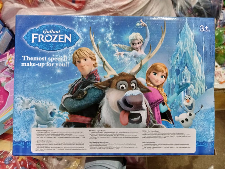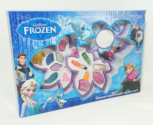 - One-piece make-up toy has various colored eyeshadows and brushes