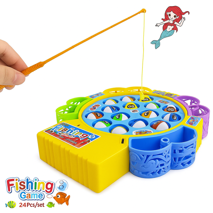 Fishing Game bachon ke liye ek exciting and skill-building toy hai jisme rotating fishing board aur moving fish action milta hai. Kids magnets wali fishing rods se machhli pakadne ki koshish karte hain β jo banata hai yeh game aur bhi challenging aur fun!